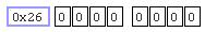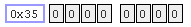 The bitfield can be used to see the bit pattern of any address in RAM (0 to 7FH) by typing the address in the blue box. If the location is bit-addressable, the bit backgrounds are white and the user can alter any of the eight bits.