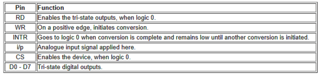 The function of the ADC pins are summarised in the above table.