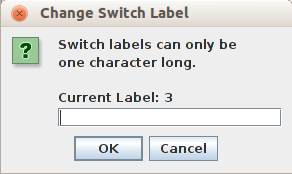 You can change the label of a switch in the switch bank by right-clicking on the switch and entering a new character. A switch label can only be one character in length.