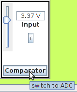 Note the tip that appears when the mouse is placed over the ADC button. Clicking on this button disables the ADC and enabled the comparator. See the Comparator for more information.