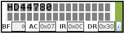 In the above image of the microcontroller panel, the individual bits for the accumulator are shown (ACC). The user can enter any address or SFR name in the blue box (replacing ACC) and the bits for that given address will then be displayed. Also, if you let the mouse pointer hover over one of the bits momentarily, the bit’s description is displayed, as shown below.