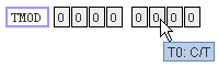 The bit field for the TMOD SFR is shown. Notice bit 2 is the counter/timer bit. Also notice the background is grey. This is because the TMOD register is not bit-addressable – the user cannot alter these bits directly.