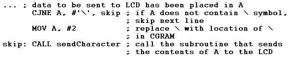 You might then write a test, as shown below, to ensure the correct symbol is displayed when writing \ to the LCD: